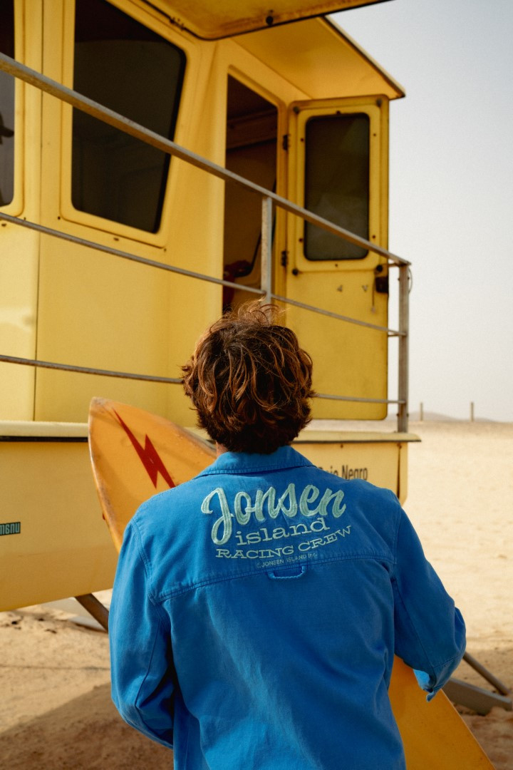 Cette veste en toile de coton sergé puise directement son inspiration dans l’univers des sports mécaniques. Sa couleur iconique et ses broderies signature lui donnent une identité forte. Revisitée à la sauce Jonsen, elle se distingue par ses grandes poches plaquées, ses empiècements en bas de manche et sa coupe légèrement « boxy » pour une allure moderne et décontractée.